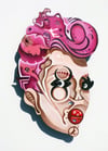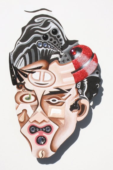 Acrylic, glitter, rhinestones & plastic on Masonite